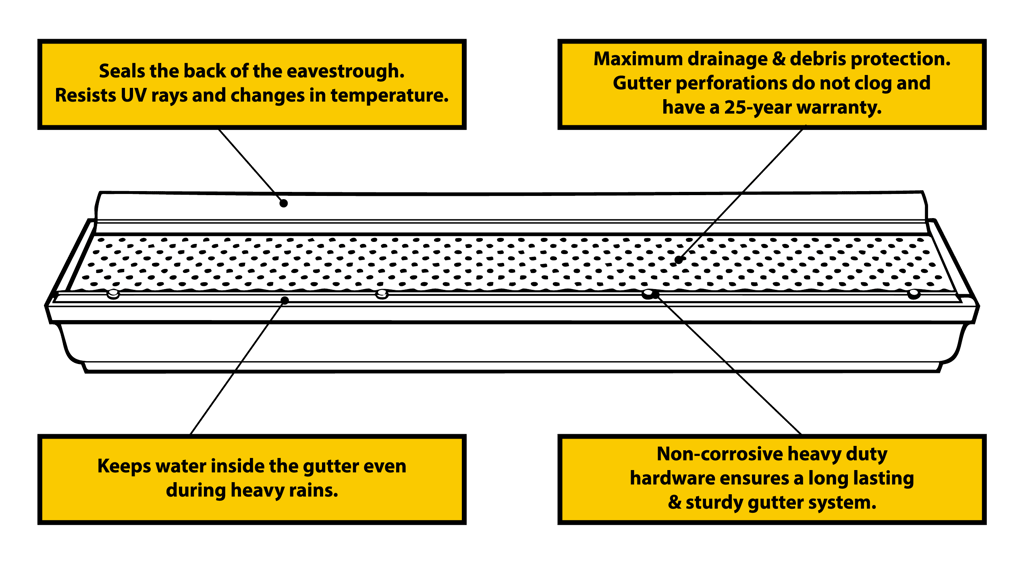 During rain or winter warm spells, the Gutter Clean System keeps gutters draining freely so that water will not seep into your home.