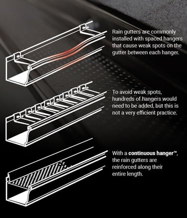 Traditional gutter systems rely on hangers placed about 16 inches apart. While they offer some support, the gaps leave sections of the gutter weak and prone to damage. In winter, heavy snow and ice can bend or warp the gutters. Open gutters also clog quickly with leaves and debris, leading to overflow and even water damage to your roof or foundation.