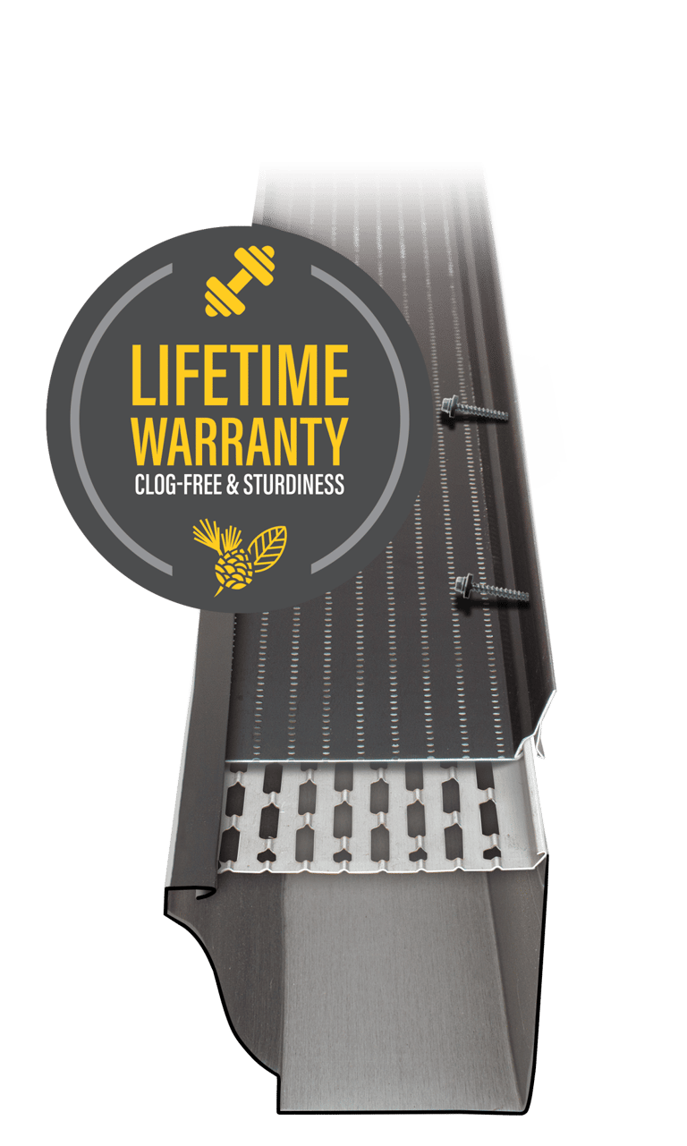 The solution? Gutter Clean System® gutter guards. Made from perforated aluminum, they allow wind to blow away leaves and debris after it dries on the surface. This innovative design makes maintenance easy—and Alu-Rex backs it with a 25-year clog-free guarantee.