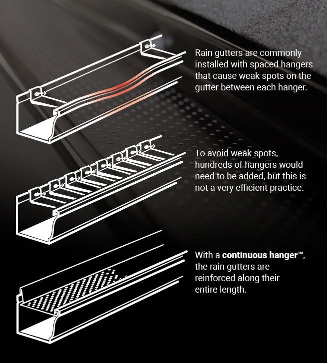 The Alu-Rex T-Rex® Continuous Hanger System is a revolutionary gutter fastening and protection solution that replaces traditional gutter hangers. Made from premium aluminum, it reinforces the entire length of the gutter, making it stronger, clog-free, and better able to withstand extreme weather.